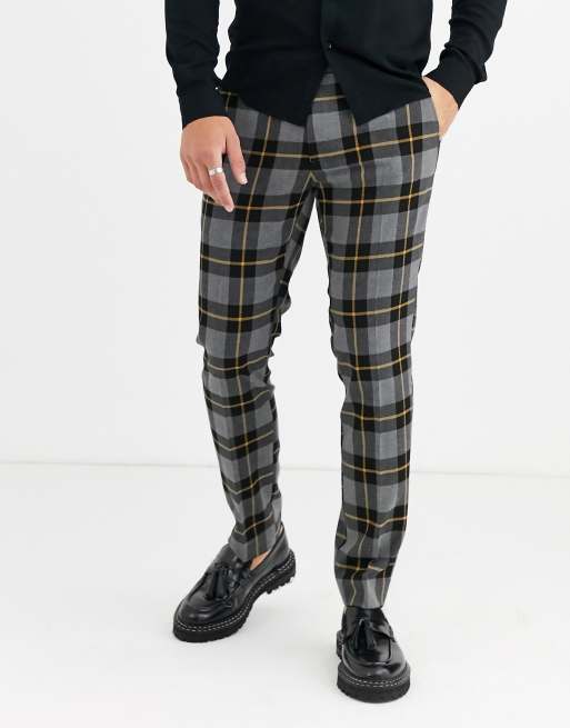 Suit pants by asos design for that thing you have to go to check design concealed fly side pockets skinny fit tight cut, regular on the waist.